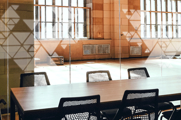 We’ve all been in them, big open concept offices with ceiling to floor windows and sectioned off glass walled meeting rooms. An additional feature of this type of architecture (depending on the time of day) is glaring beams of sunlight that not only annoys but blindingly distracts everyone in the work environment as well. With custom frosted vinyl window graphics you can create simple geographic patterns that can be used an inexpensive blind or curtain alternative that still lets light in, but at a more diffused glow. Some offices may be temporary spaces that require client confidentiality, and although glass enclosures do absorb sound better than temporary partitions, they don’t off too much in terms of privacy. Full panel vinyl can instill confidence in your team and clients that you value their personal concerns. Since our custom frosted vinyl can also be created in various sizes, you can also have partially frosted panels to easily see if meeting rooms are being occupied and by whom.