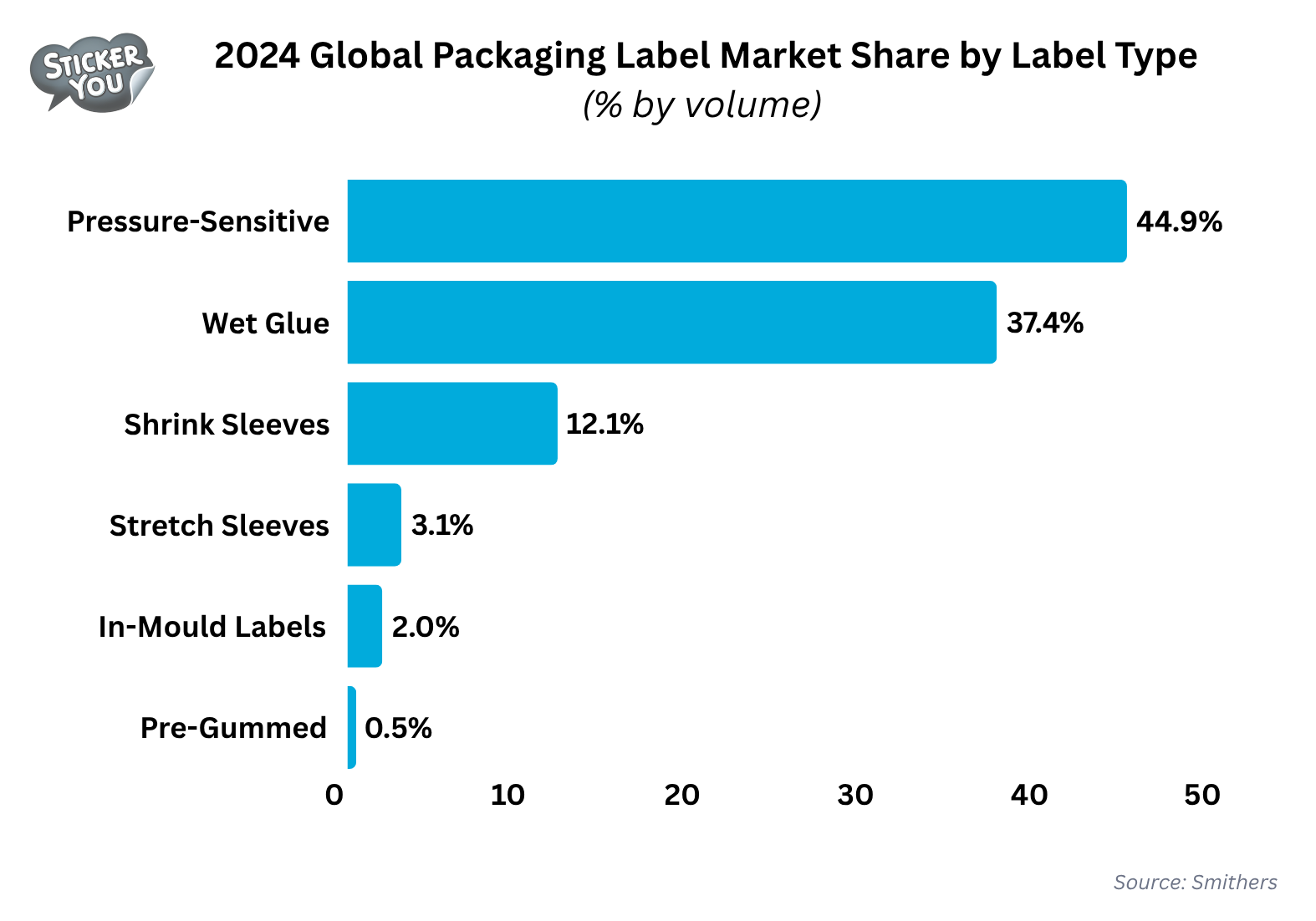 • Shrink sleeves held a 12.1% market share by volume in the packaging label market in 2024.
