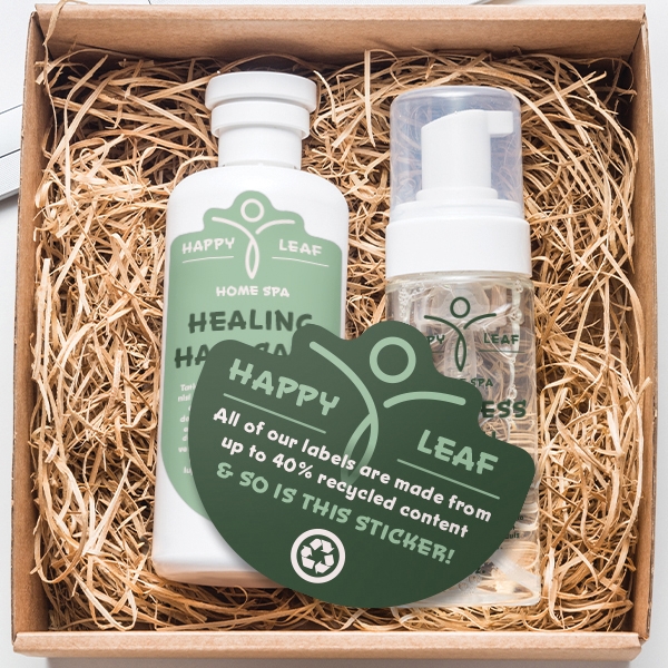Eco-Safe stickers are crafted from 40% post-consumer recycled PET, reducing the demand for virgin plastic. Plus, unlike traditional vinyl stickers, Eco-Safe stickers eliminate the lamination step, further reducing plastic usage.Â